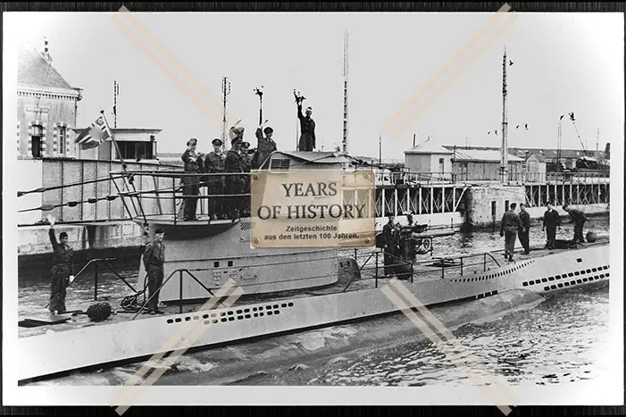Foto Unterseeboot U-Boot U 93 unter Claus Korth im Hafen grüßende Mannschaft X2023-09-25-157Foto Unterseeboot U-Boot U 93 unter Claus Korth im Hafen grüßende Mannschaft