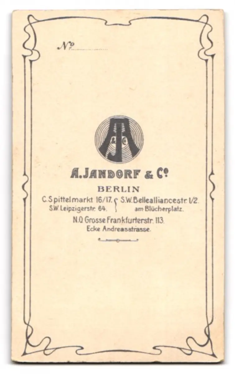 Fotografie A. Jandorf & Co., Berlin, Spittelmarkt 16/17, Porträt eines eleganten Herrn