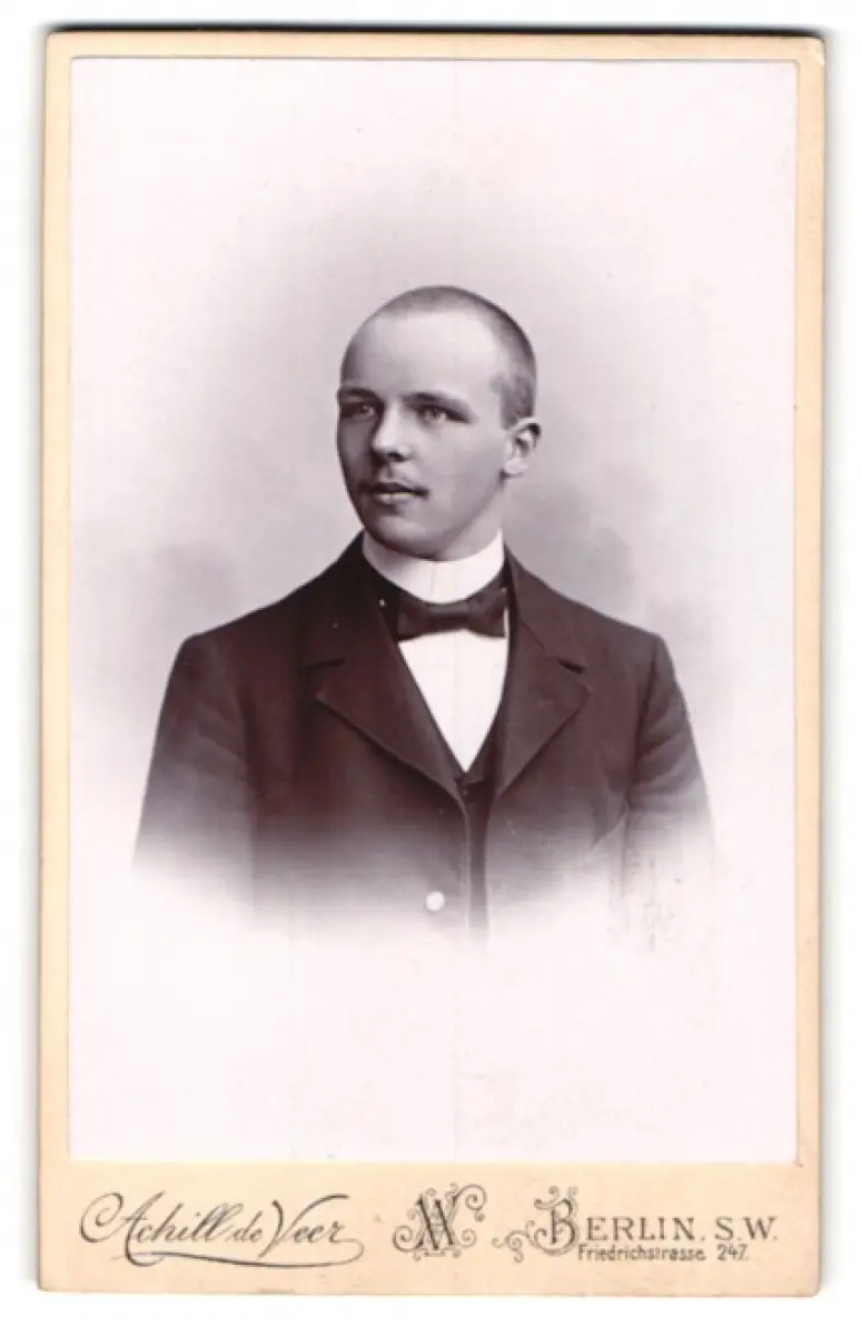 Fotografie Achill de Veer, Berlin, Friedrichstrasse 247, Herr in Anzug und Fliege