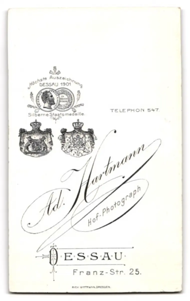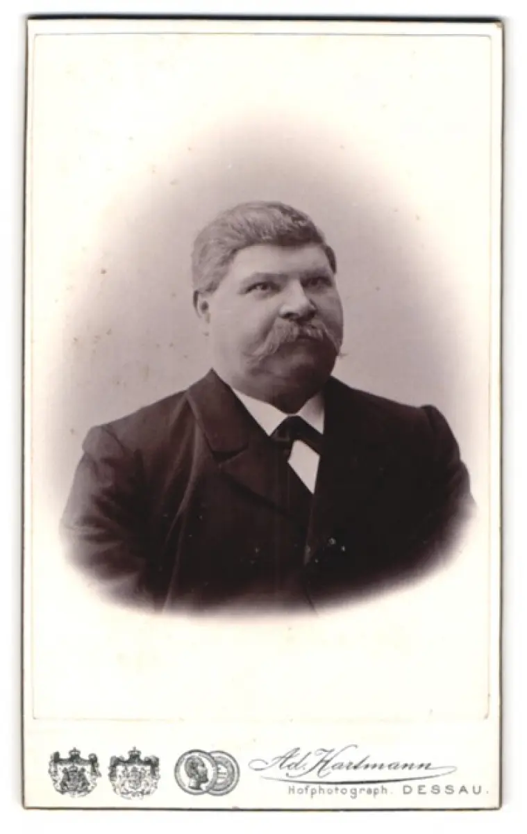 Fotografie Ad. Hartmann, Dessau, Franz-Str. 25, Porträt eines Mannes mit markantem Schnurrbart