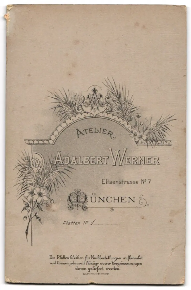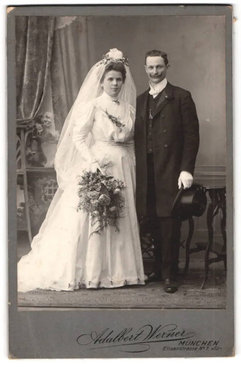 Fotografie Adalbert Werner, München, Elisenstrasse Nr. 7, Hochzeitspaar im Atelier