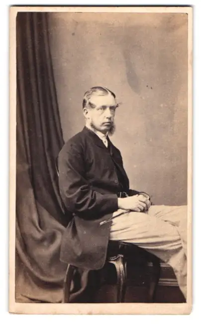 Fotografie Angel, Exeter, Portrait junger Engländer im Anzug mit heller Hose und lichtem Backenbart