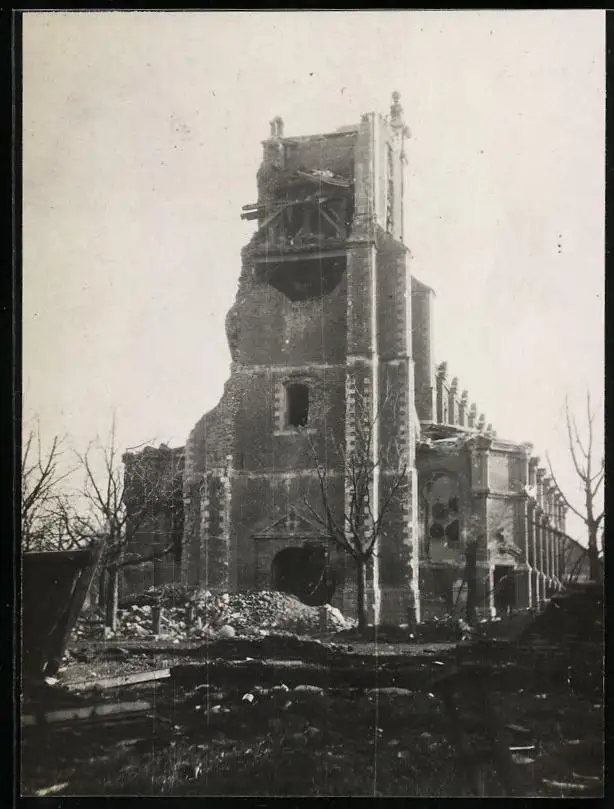 Fotografie Ansicht Douvrin, von Engländern zerschossene Kirche, 1.WK