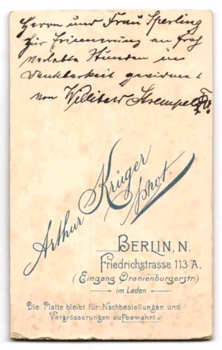 Fotografie Arthur Krüger, Berlin, Friedrichstrasse 113A, Student Willibald im Anzug mit Couleur