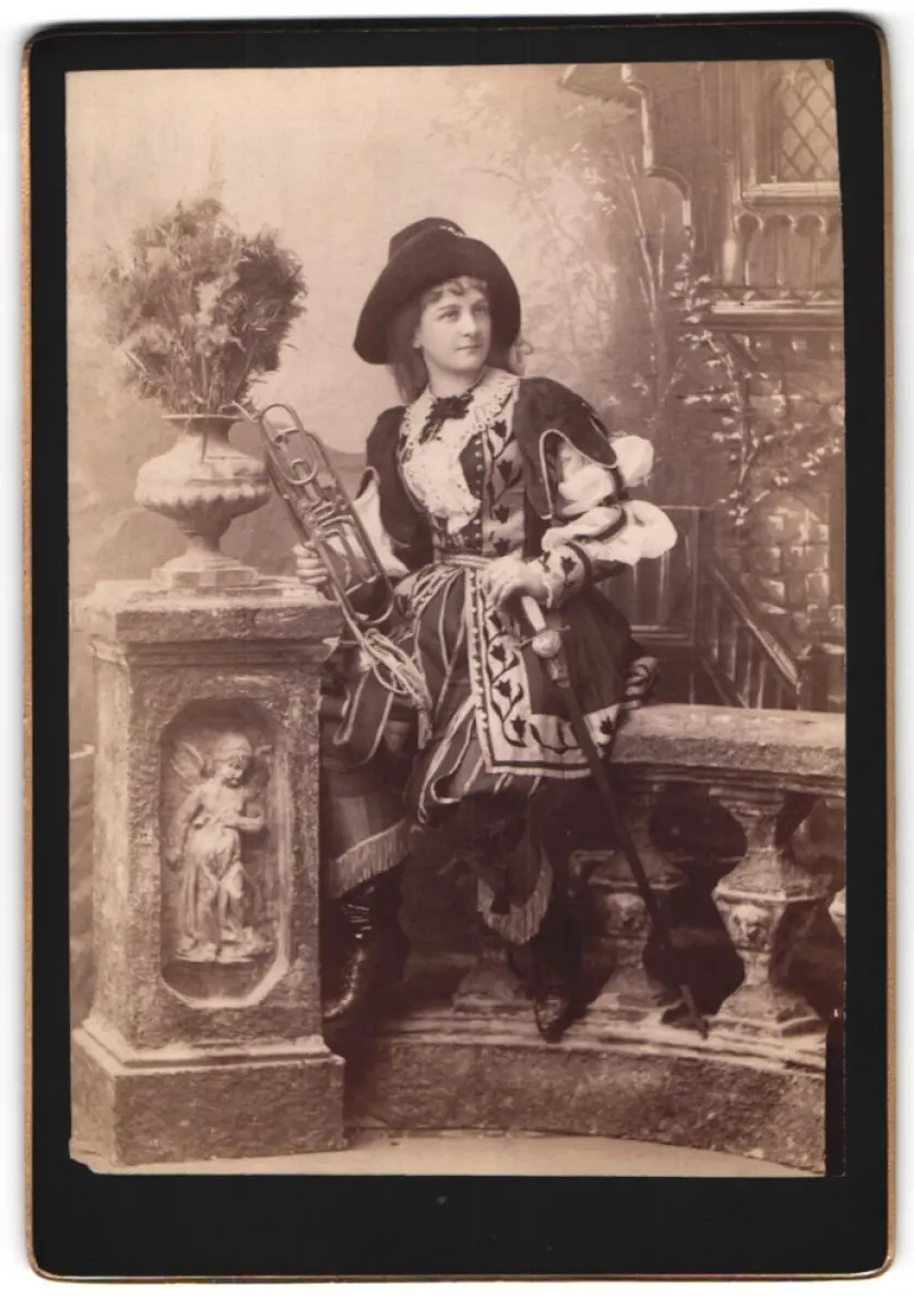 Fotografie Atelier Helios, Vöslau, junge Schauspielerin als Trompeter von Säckingen im Kostüm