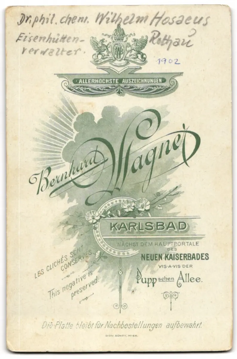 Fotografie Bernhard Wagner, Carlsbad, Portrait Dr. Wilhelm Hosaeus, Direktor der Eisenhüttenwerke in Rothau (Elsass)