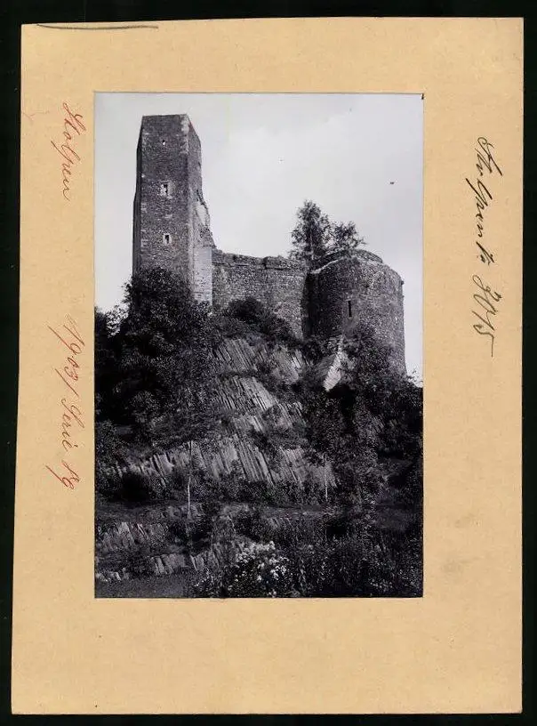 Fotografie Brück & Sohn Meissen, Ansicht Stolpen i. Sa., Blick auf die Ruine Siebenspitzenturm