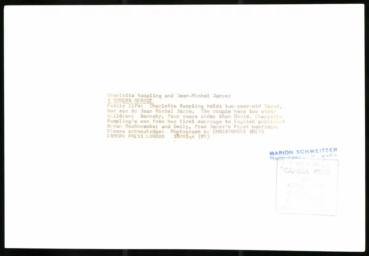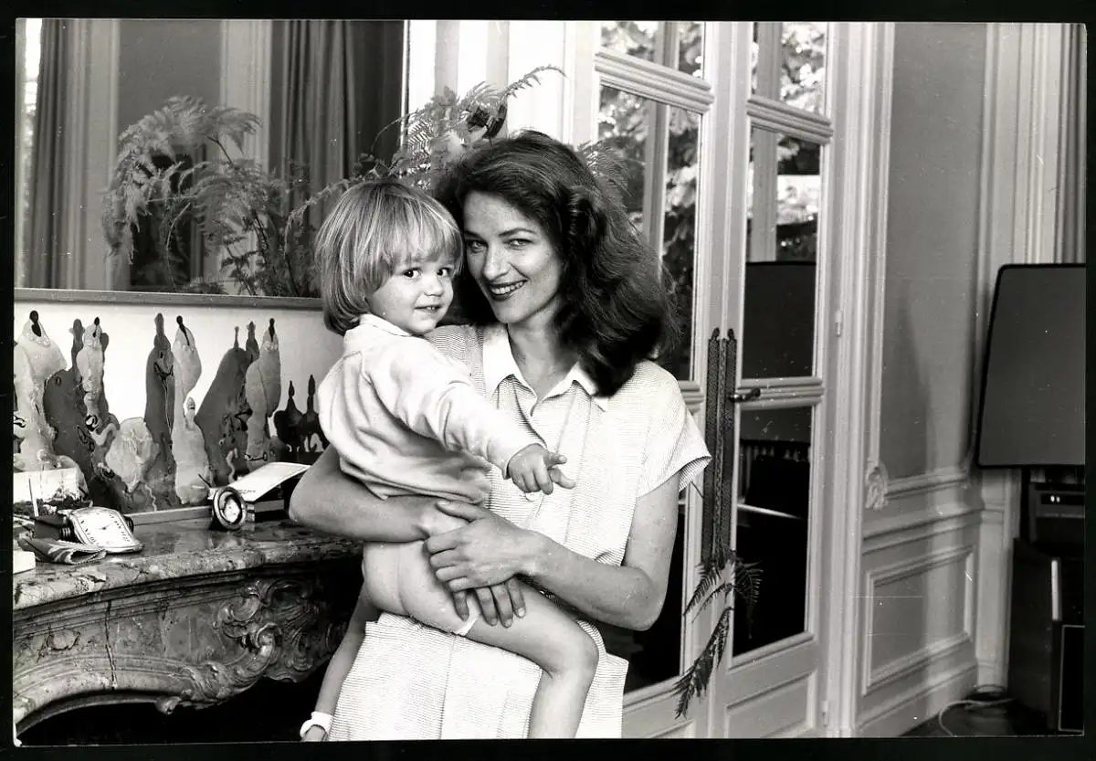 Fotografie Christopher Smith, London, Portrait Charlotte Rampling mit ihrem Sohn David im Arm, Grossformat 29 x 21cm