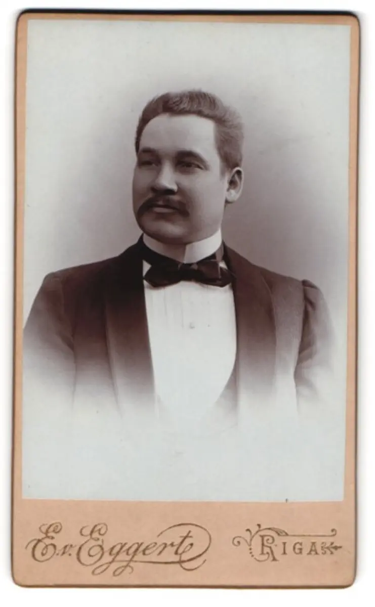 Fotografie E. v. Eggert, Riga, Alexander-Str. Nr. 6, Porträt eines eleganten Herrn