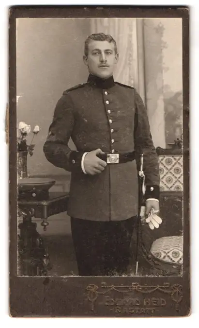 Fotografie Eduard Heid, Rastatt, Portrait Soldat in Uniform Artillerie Regiment mit Signalgeber Ärmelabzeichen