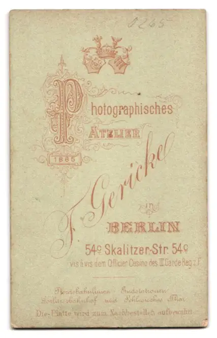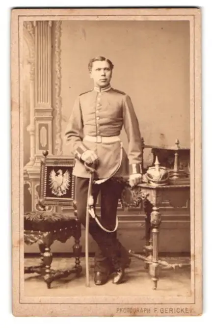 Fotografie F. Gericke, Berlin-Kreuzberg, Skalitzerstrasse 54c, Garde Soldat in uniform nebst Pickelhaube