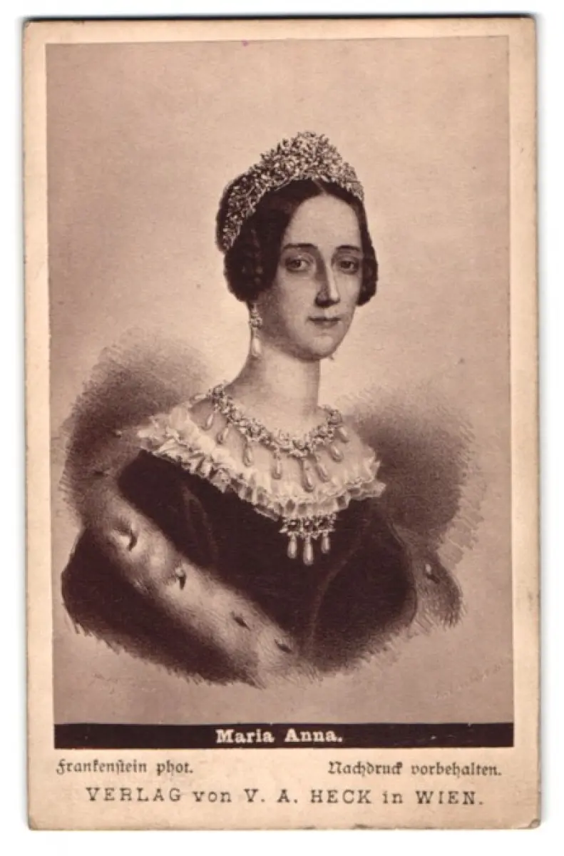 Fotografie Frankenstein, Wien, Portrait Maria Anna von Savoyen, Kaiserin von Österreich, nach einem Gemälde