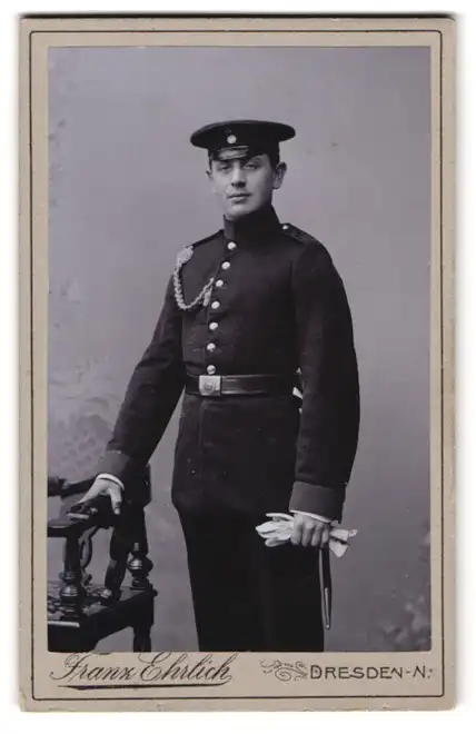 Fotografie Franz Ehrlich, Dresden, sächsischer Soldat in Uniform Rgt. 12 mit Schützenschnur