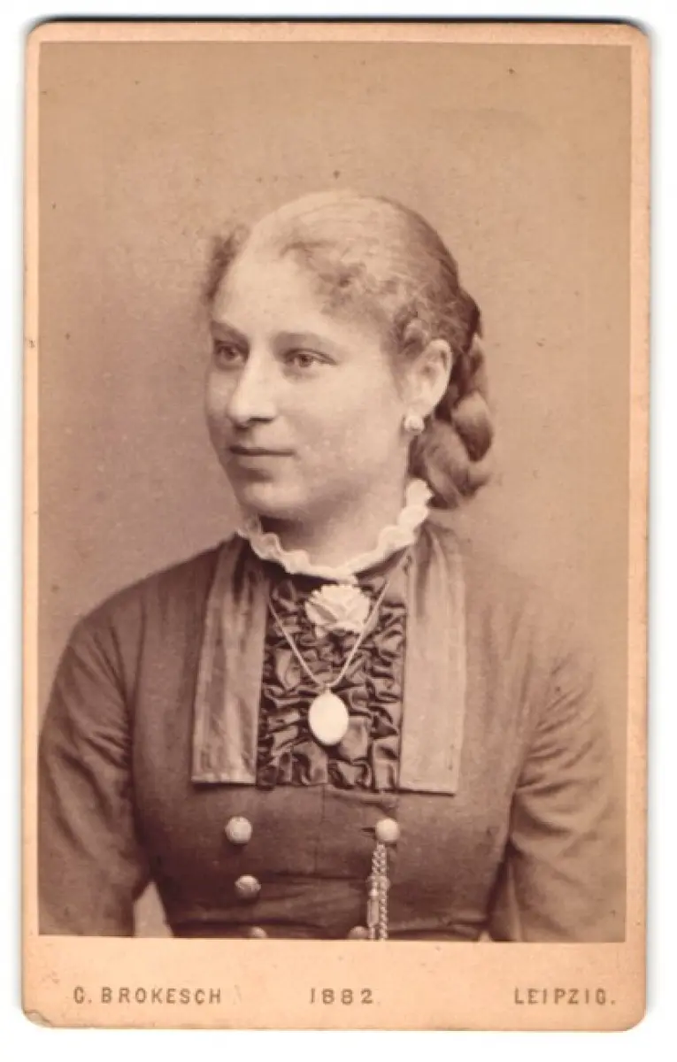 Fotografie G. Brokesch, Leipzig, Zeitzerstrasse 48, Porträt einer Frau im Jahr 1882
