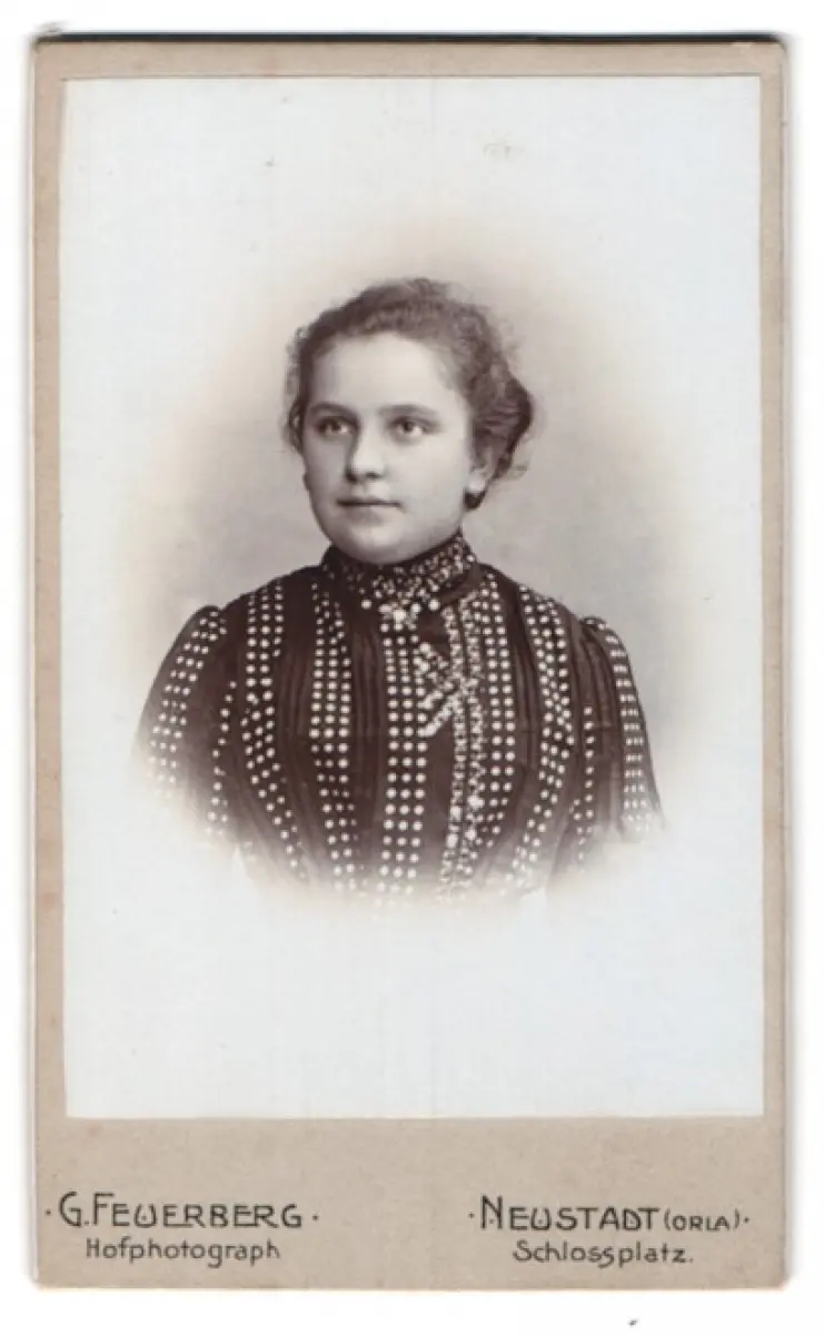 Fotografie G. Feuerberg, Neustadt /Orla, Schlossplatz, Porträt einer jungen Frau