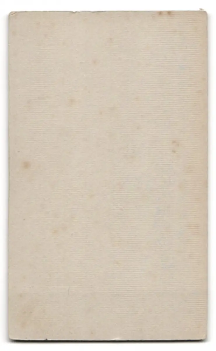 Diese CDV Fotografie zeigt das eindrucksvolle Porträt einer jungen Frau, deren Blick in die Ferne gerichtet ist. Sie trägt eine elegant gemusterte Bluse mit hohem Kragen, die durch ihren stilvollen Charme besticht. Die Frisur ist kunstvoll zurückgebunden, was das Gesicht der Frau sanft umrahmt. Die Aufnahme fängt die zeitlose Anmut und das stille Selbstbewusstsein der Dargestellten ein., guter Zustand