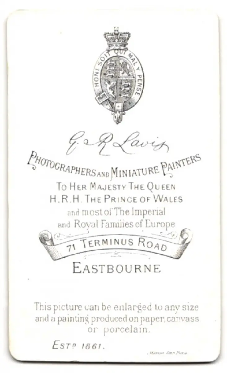 Fotografie G. R. Lavis, Eastbourne, Terminus Road 71, Porträt eines Herrn mit Schnurrbart