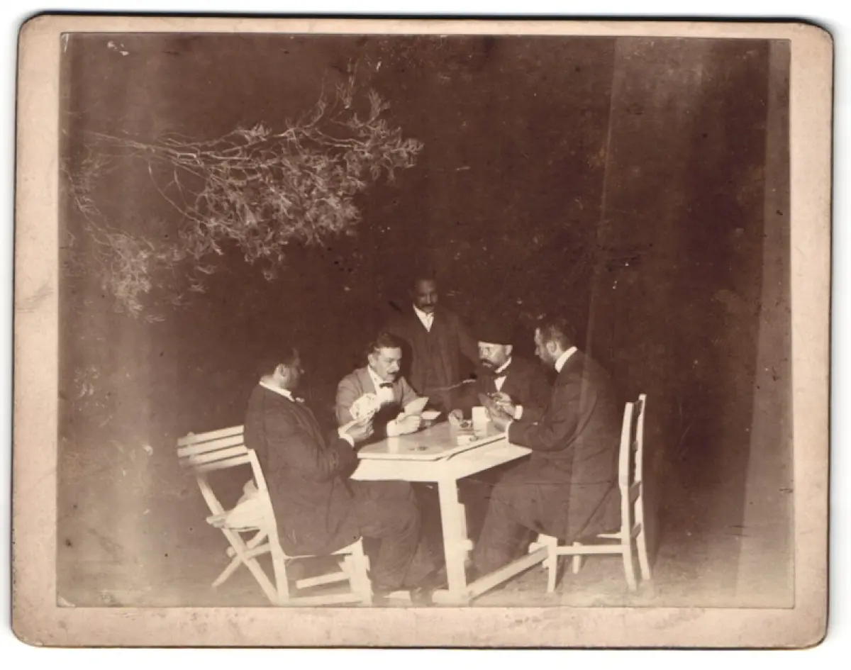 Fotografie Herren bei einer Runde Skat spielen um Bargeld