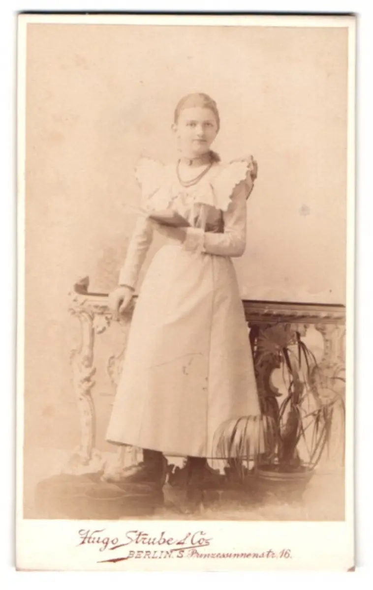Fotografie Hugo Strube & Co., Berlin, Prinzesinnennstrasse 16, Junge Frau in elegantem Kleid