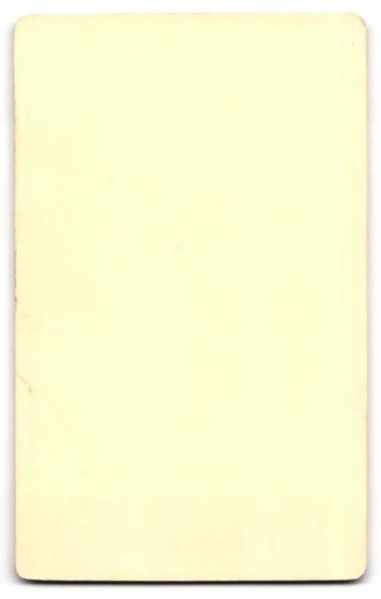 Diese CDV Fotografie fängt das zeitlose Porträt einer jungen Dame ein, die in einem prächtigen, dunklen Kleid sitzt. Ihr Haar ist kunstvoll hochgesteckt, was ihren Gesichtszügen eine besondere Würde verleiht. Sie sitzt auf einem elegant verzierten Stuhl und hat eine Hand sanft auf einem mit einem gemusterten Tuch bedeckten Tisch ruhend. Die Komposition und die Haltung der Dame strahlen eine ruhige Anmut und stille Selbstsicherheit aus., guter Zustand Größe ca. 6,5 x 10,5cm