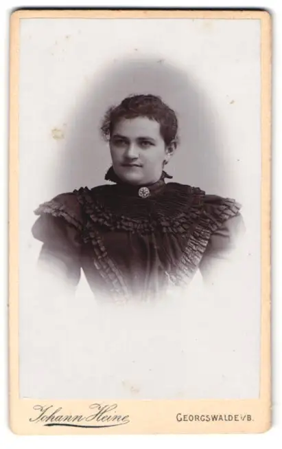 Fotografie Johann Heine, Georgswalde i. B., Junge Dame in tailliertem Kleid mit Rüschenkragen