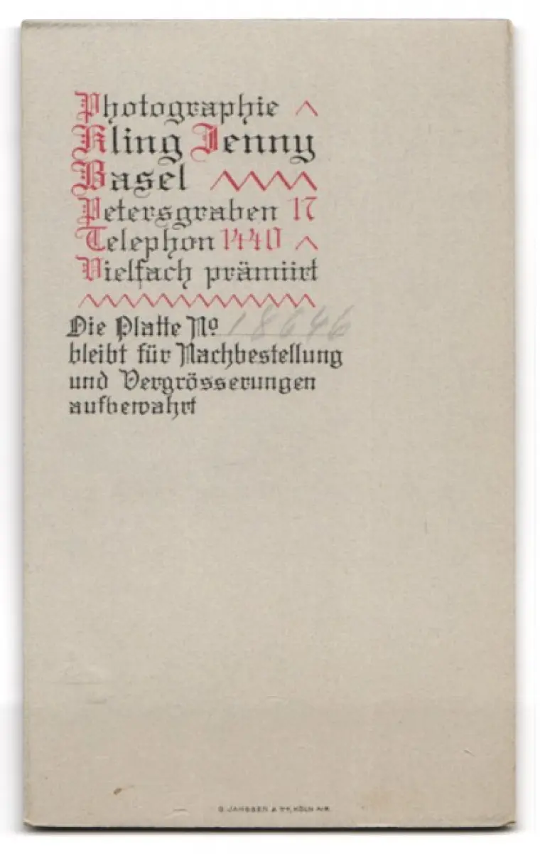 Fotografie Kling Jenny, Basel, Petersgraben 17, Porträt eines Kindes