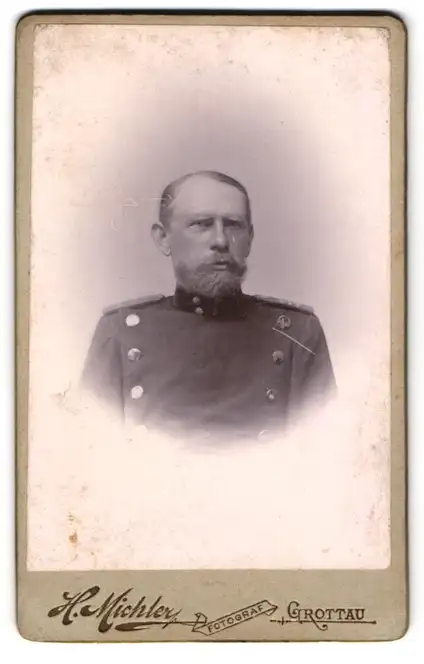 Fotografie L. Michler, Grottau, Porträt eines Soldaten in Uniform