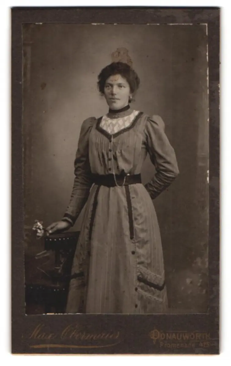 Fotografie Max Obermaier, Donauwörth, Promenade 425, Porträt einer Frau im eleganten Kleid
