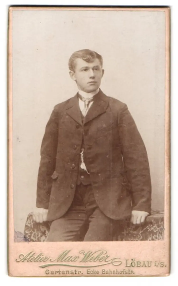 Fotografie Max Weber, Löbau i. S., Gartenstr. Ecke Bahnhofstr., Porträt eines jungen Mannes