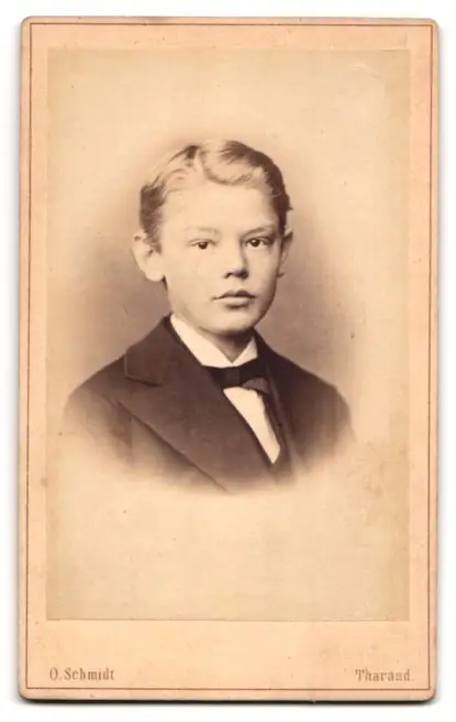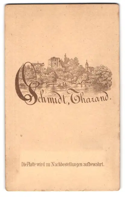 Fotografie O. Schmidt, Tharand, Ansicht Tharand, Uferpartie mit Turmruine, vorderseitig Knirps im Portrait