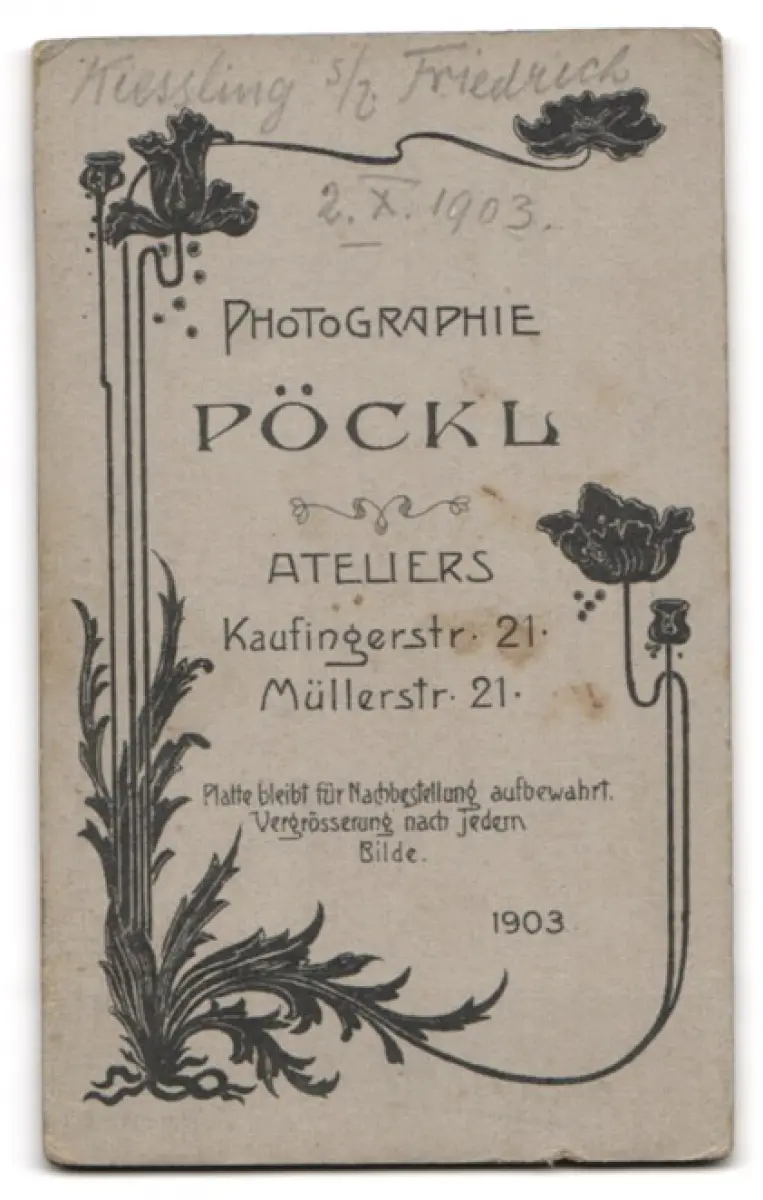 Fotografie Oscar Pöckl, München, Kaufingerstr. 21, Porträt eines jungen Mannes 1903