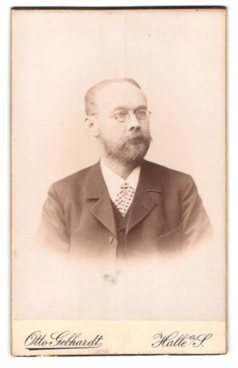 Fotografie Otto Gebhardt, Halle a. S., Grosse Ulrich Strasse 10, Porträt eines Herrn mit Brille