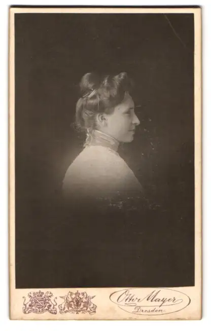 Fotografie Otto Mayer, Dresden, Pragerstr. 38, Schöne junge Dame mit Hochsteckfrisur im Profil