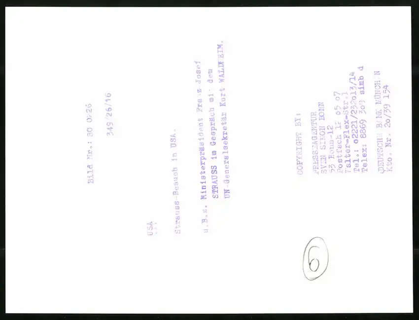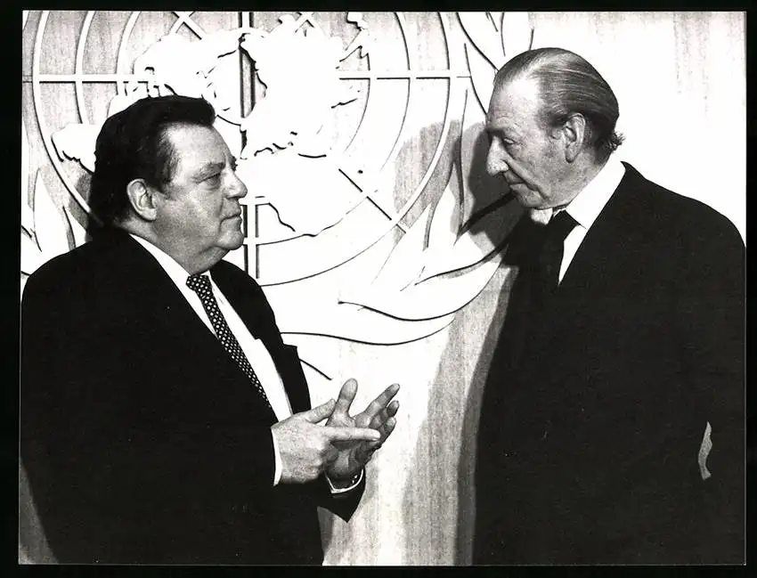 Fotografie PA Sven Simon, Bonn, F. J. Strauss in den USA mit UN-Generalsekretär Kurt Waldheim