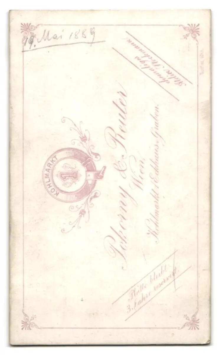 Diese CDV Fotografie zeigt das beeindruckende Porträt eines ernst dreinblickenden Mannes in einem eleganten Anzug mit Fliege. Seine feinen Gesichtszüge und das sorgfältig gekämmte Haar zeugen von einem zeitlosen Stil. Die Brille verleiht ihm eine intellektuelle Ausstrahlung, während der neutrale Hintergrund den Fokus auf seine markante Erscheinung lenkt. Ein Beispiel für die kunstvolle Porträtfotografie des 19. Jahrhunderts., guter Zustand Größe ca. 7,0 x 11,0cm