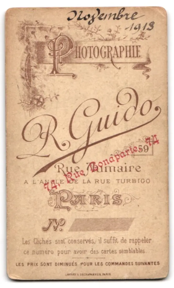 Fotografie R. Guido, Paris, Rue Bonaparte 74, Portrait eines eleganten Herrn
