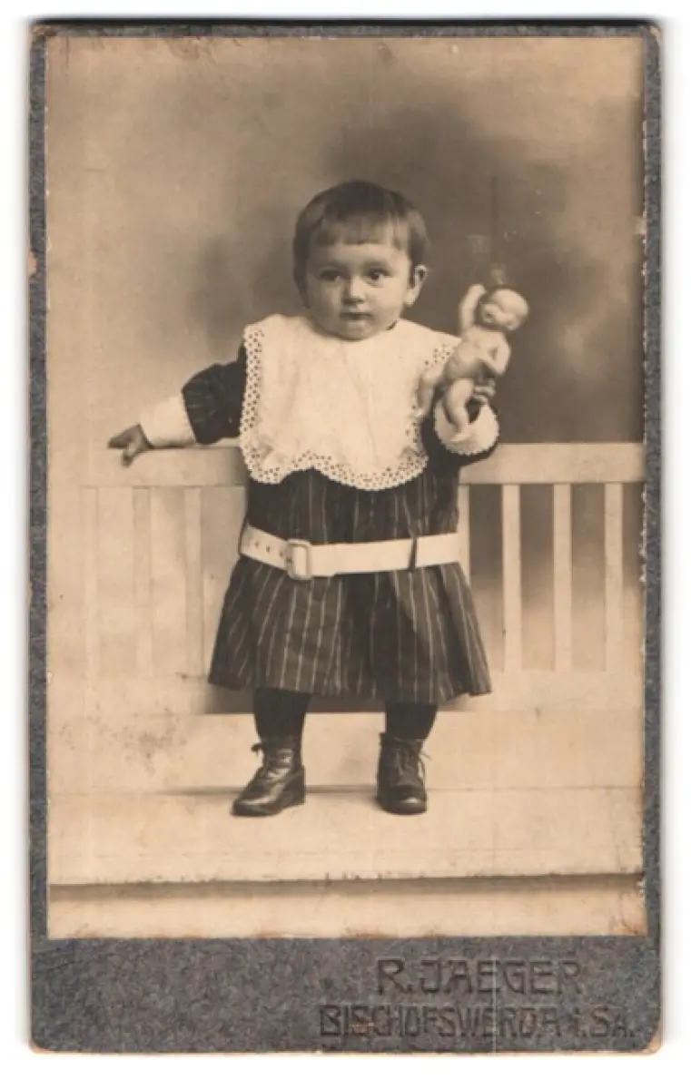 Fotografie R. Jaeger, Bischofswerda, Kind mit Puppe
