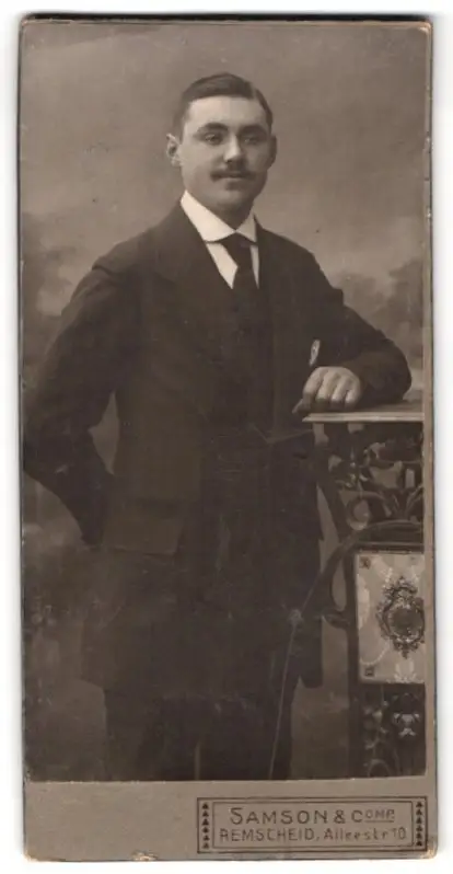 Fotografie Samson & Comp., Remscheid, Alleestrasse 10, Portrait junger Herr im Anzug mit Krawatte