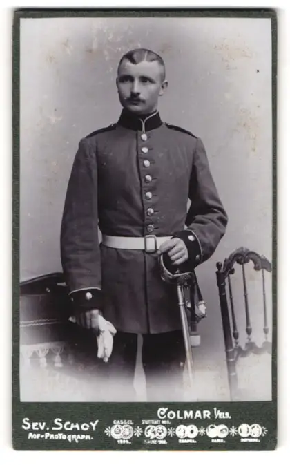 Fotografie Sev. Schoy, Colmar, Stanislausstrasse 4, Soldat in Uniform mit Portepee am Degen