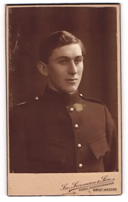 Fotografie Sw. Svensson & Son, Kristianstad, junger schwedischer Soldat in Uniform
