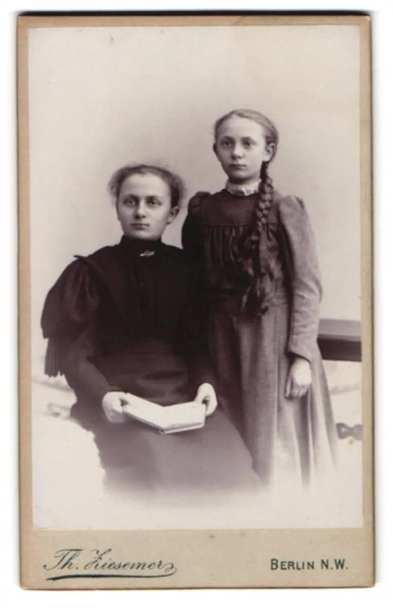 Fotografie Th. Ziesemer, Berlin, Mutter mit junger Tochter samt geflochtenem Zopf