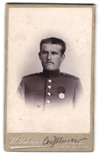 Fotografie W. Schneider, Metz, Junger Soldat in Uniform Rgt. 8 mit einer Zentenarmedaille