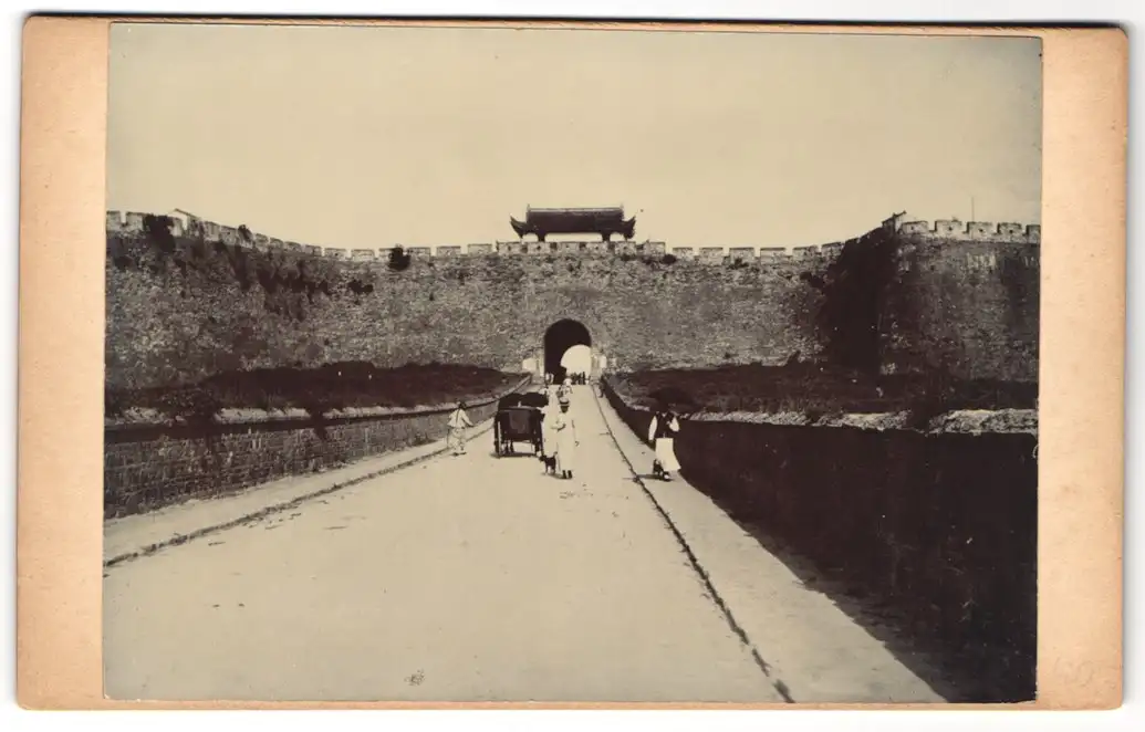 Fotografie unbekannter Fotograf, Ansicht Peking, Strasse nach der Stadtmauer mit Tor