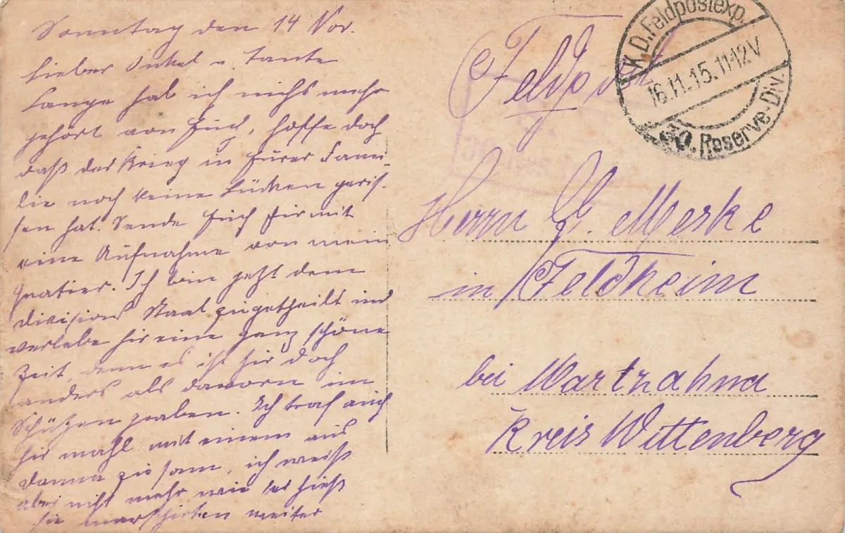 Rückseite:beschrieben 1915