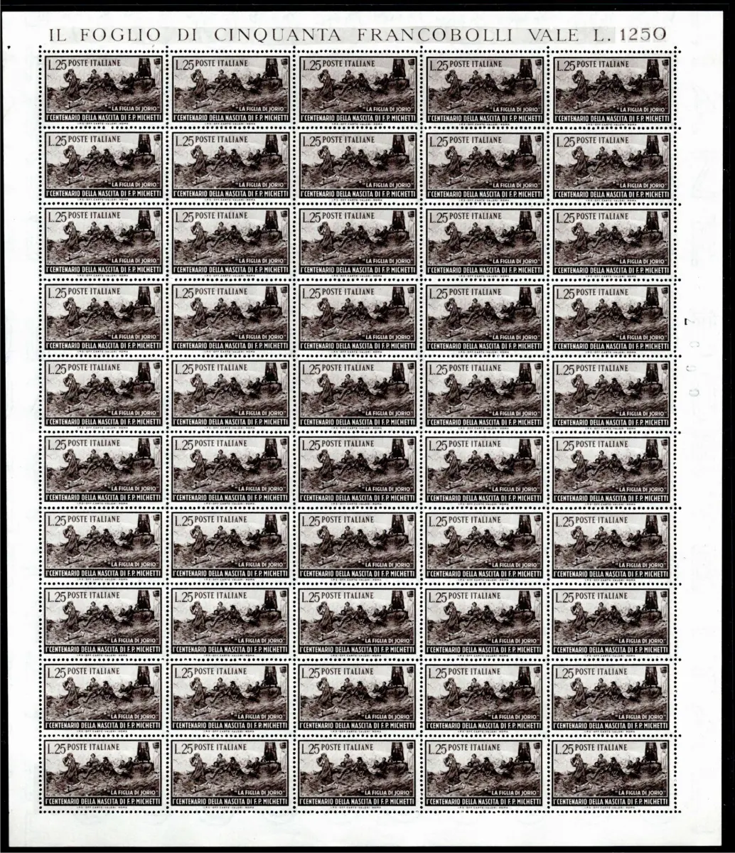 Francesco Paolo Michetti Blatt mit fünfzig Exemplaren Vollgummi - Francesco Paolo Michetti Nr. 671 Blatt mit fünfzig Exemplaren - sehr gute Zentrierung - Selten - Kat. euro 500 Cod. 376/13