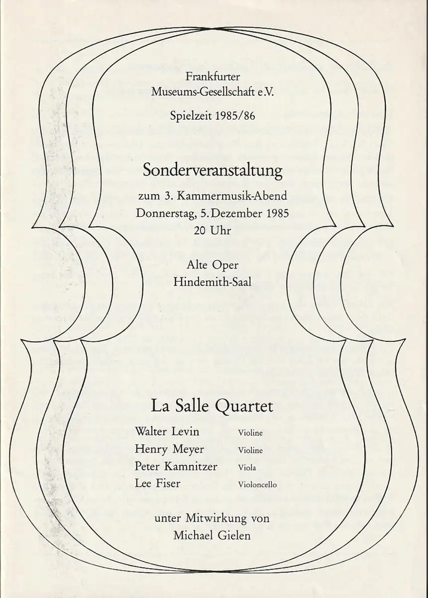 Frankfurter Museums-Gesellschaft e. V: Programmheft Sonderveranstaltung zum 3. KAMMERMUSIK-ABEND 5. Dezember 1985 Alte Oper Hindemith-Saal Spielzeit 1985 / 86.