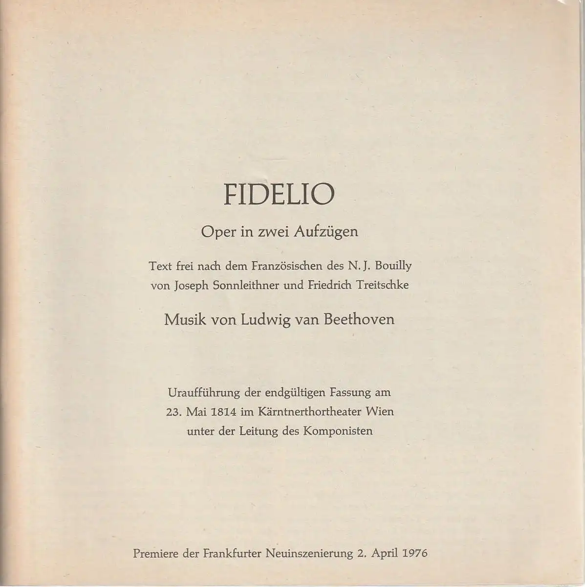 Frankfurter Oper, Peter Mario Katona: Programmheft Ludwig van Beethoven FIDELIO Premiere 2. April 1976 Spielzeit 1975 / 76.