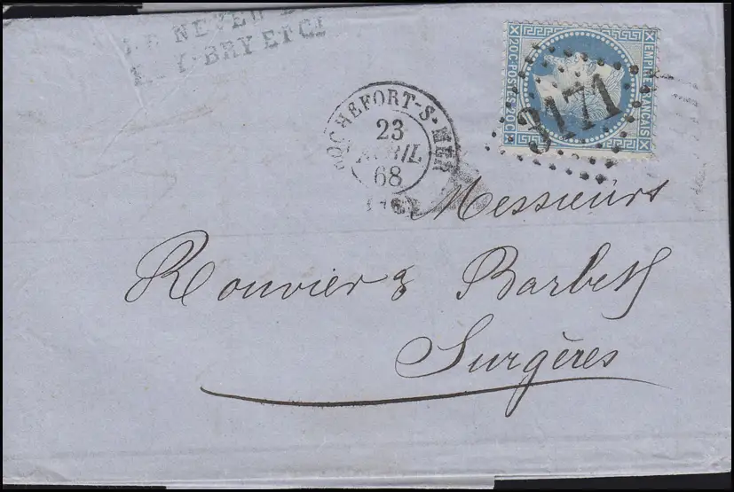 Rückseitig mit schwachen Ankunftsstempel in Surgeres