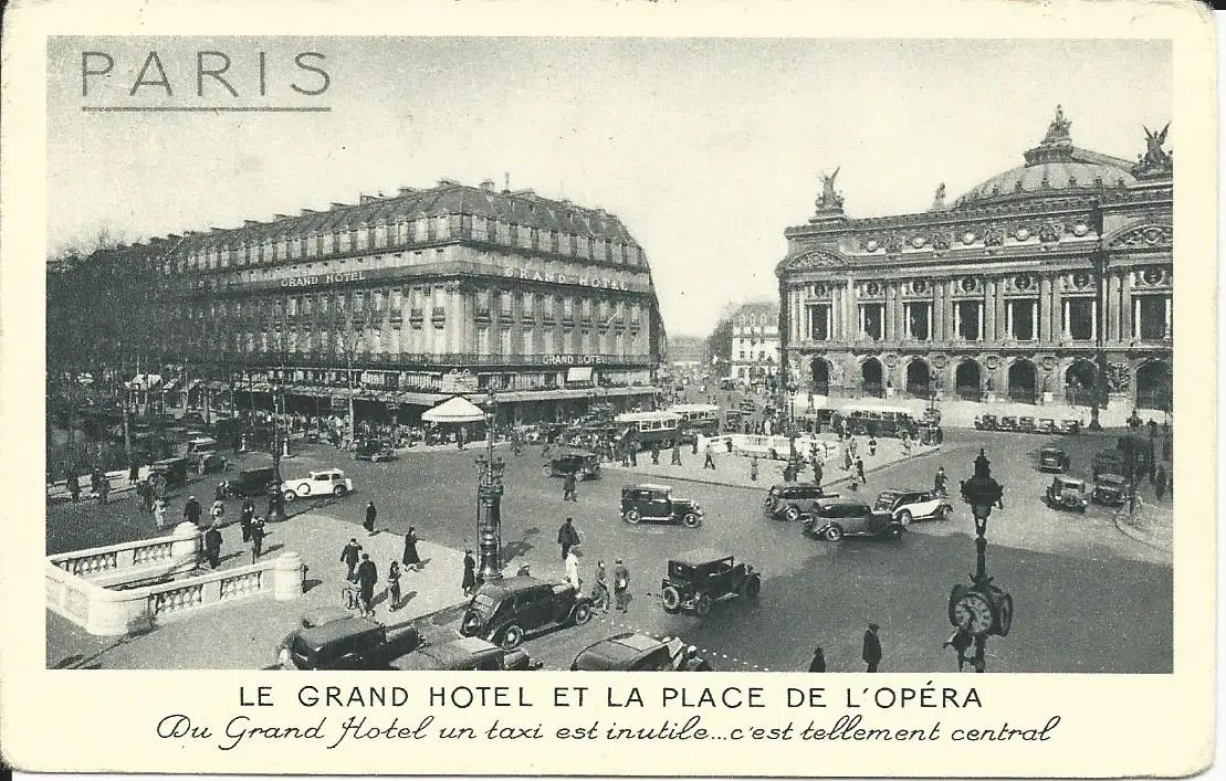 Frankreich, Paris, Grand Hotel et Place de l´Opéra m. Oldtimer, 1937 gebr. sw AK