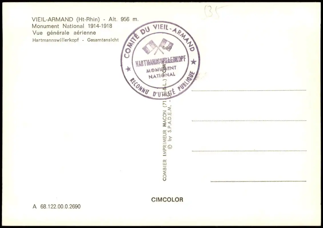 .Frankreich VIEIL-ARMAND Monument National 1914-1918 Hartmannswillerkopf 1980
